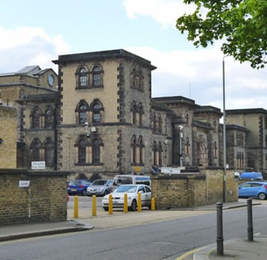Photo credits: Wandsworth Prison (Robin Webster / Geograph), CC BY-SA 2.0; Prison Cell Door (Slingpool), CC BY-SA 3.0.